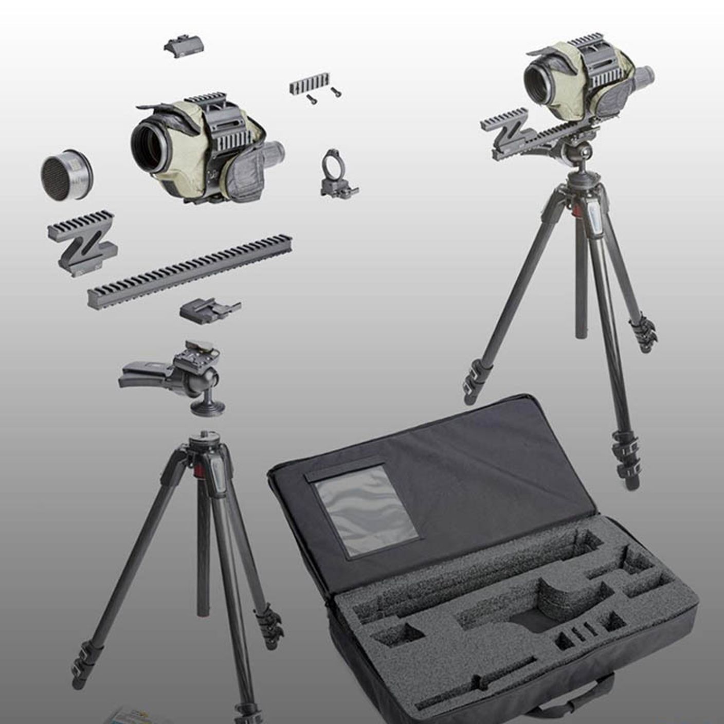 Интерфейс SPOTR подразумевает крепление аксессуаров один к другому, что делает его чрезвычайно компактным и удобным для снайперских команд. Обработанный на станке "CNC", корпус не только гарантирует сохранность оптики, но и служит базой для крепления аксессуаров. На верхние и боковые рельсы на корпусе возможно дополнительно установить стандартные тактические ИК-фонари. Регулируемые быстросъемные рычаги LaRue позволяют оперативно разбирать оборудование для упаковки и транспортировки. Полный набор с мягким чехлом и алюминиевым корпусом весит менее 2 килограммов.