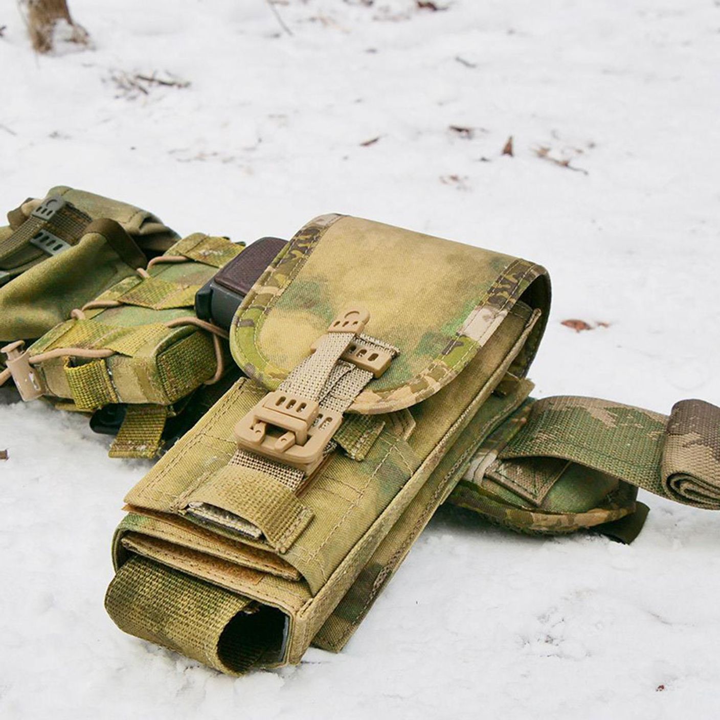 Кобура монтируется на первый эшелон снаряжения при помощи интерфейса molle, занимающего два слота. Материалом для кобуры служит нейлоновая ткань кордура, многократно проверенная во многих сложных операциях. На неё нанесен принт A-Tacs FG, работающий в видимом и инфракрасном спектре. Вся фурнитура высокого качества. В частности кнопки имеют одностороннее открытие и застрахованы от случайностей. Простая удобная доступная кобура поможет облегчить вашу сложную работу. Спрашивайте в компании Allmulticam.