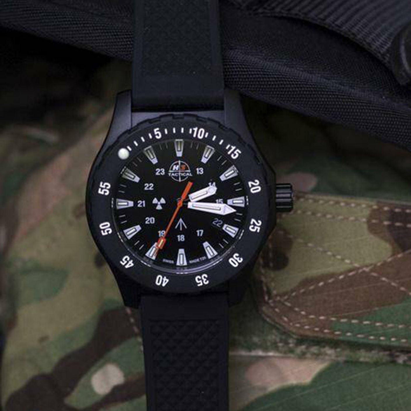 Представляем вашему вниманию обзор тактических швейцарских часов Trooper Pro H3.3112.786.2.3 H3 Tactical. Часы приходят в очень стильной коробке. В этих часах используется швейцарский кварцевый механизм калибра Ronda. Он обеспечивает точный ход, при этом часы не надо заводить. Механизм упрятан в прочнейший корпус из нержавеющий стали. Крышка крепится на резьбе. Под крышкой присутствует уплотнительное кольцо обеспечивающие водостойкость часов в 100 м или 10 атм, что позволяет плавать без боязни поломки.