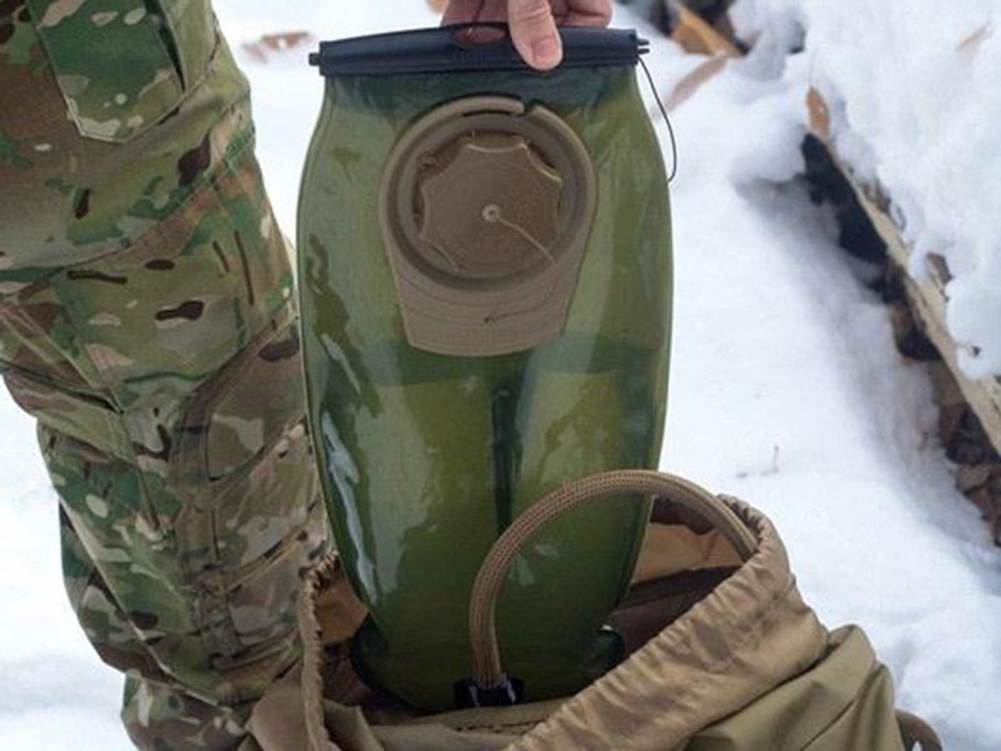 Трубка гидратора сменная, обладает достаточной длиной и закрыта чехлом песчаного цвета. Трубка одной стороной подключается к клапану на гидраторе. Затем гидратор крепится в специальный карман в рюкзаке. Трубка выводится через отверстие, которым снабжены почти все современные рюкзаки, как тактические, так и туристические. В стандартной комплектации гидратор снабжен поилкой Helix Valve. На фото она прикрыта защитной крышкой. Крышка также привязана веревочкой защищающей от утери.
