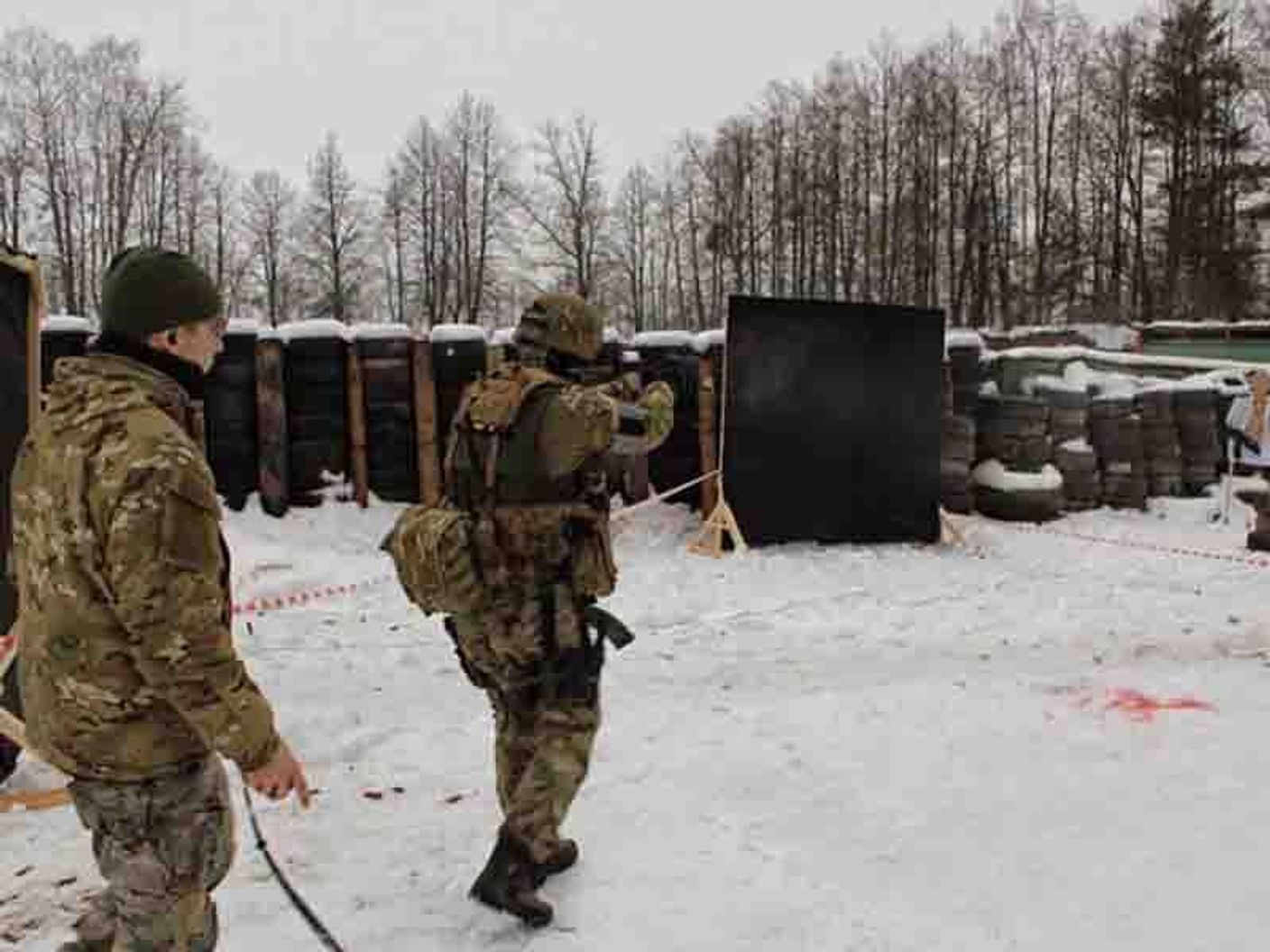 Наложение жгута по одной из вводных на упражнении. Переход на резервное оружие в движении к укрытию.