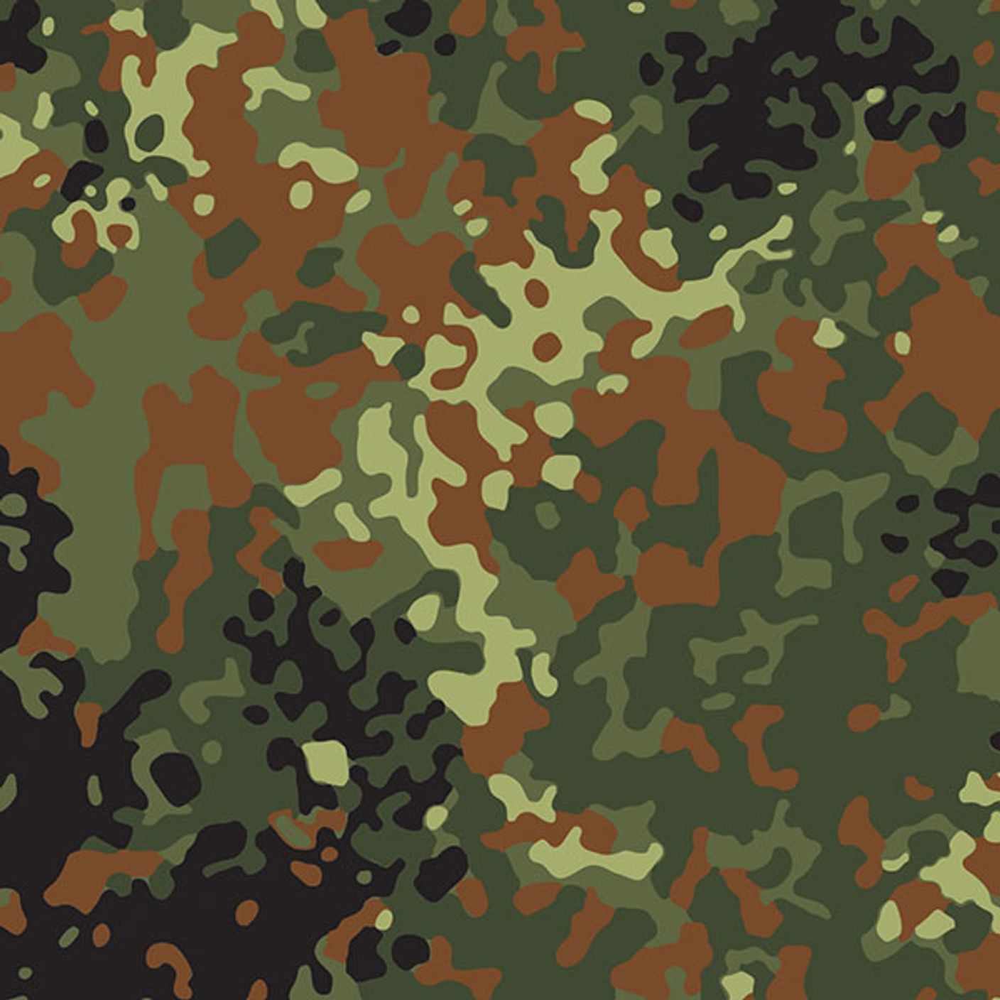 Моментально узнаваемый камуфляжный принт Flecktarn прочно ассоциируется с немецкой армией. Эффективность узора в плотной растительности европейских лесов обеспечивает ему место в элите камуфляжных принтов, которые прошли проверку временем. Он зарекомендовал себя как одну из самых подходящих для европейских ландшафтов расцветку.