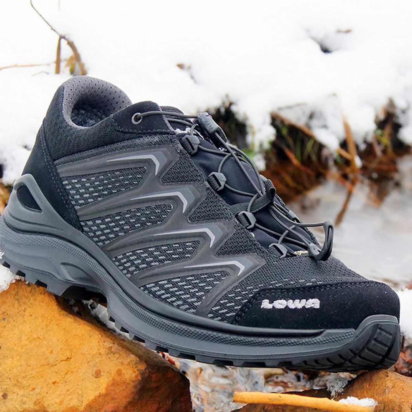 Благодаря подошве Lowa Enduro Evo вы получаете отличный контакт с ландшафтом, а внутренняя часть стельки Lowa DynaPU даёт ноге комфорт, будто вы ходите по мягкому ковру. К шнуровке производитель подошёл с немецкой педантичностью. В итоге мы получаем быструю и удобную систему Speed-Lace. Быстрая шнуровка даёт возможность отрегулировать ботинок по ноге пользователя.