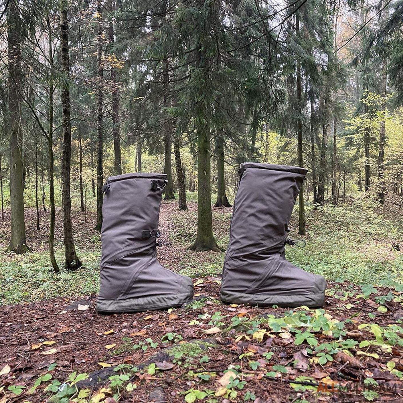 Для решения этой проблемы российская компания 5.45 DESIGN разработала специальные утеплённые чехлы на обувь. По своему устройству они являются, скорее, бахилами и выполняют вспомогательную роль. Их цвет нейтральный и отлично выполняет маскирующие задачи в комплексе с другим тактическим снаряжением. Высота чехлов достигает верха икроножной мышцы, что сделано для более эффективного сохранения тепла, а также такая высота позволяет пользователю передвигаться по глубокому, рыхлому снегу, что может происходить в районе базового лагеря.