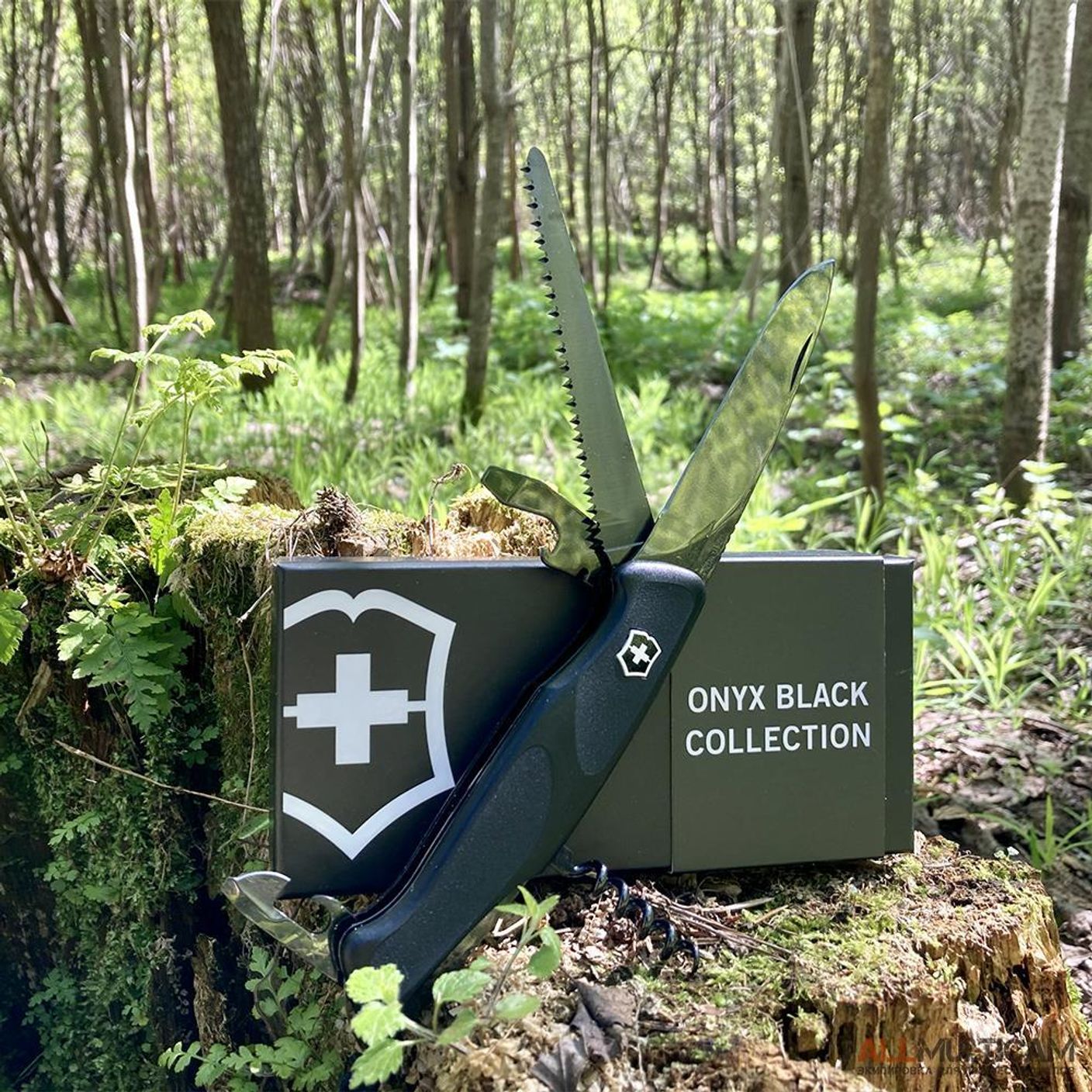 Складной нож Victorinox Ranger Grip 55 Onyx Black имеет уже более расширенные функции. Он относится к новинкам, хотя в его дизайне прослеживается дань традициям. Фирменный рисунок на рукоятке выглядит как знак качества. Этот нож, выполненный из высококачественной стали, имеет 12 функций, способных существенно облегчить жизнь активного человека как в городской среде, так и на природе. Лезвие с системой блокировки; открывалка для консервных банок с малой плоской отверткой 3 мм; открывалка для бутылок с большой плоской отвёрткой 5 мм с системой блокировки и приспособлением для зачистки проводов; пила по дереву; шило; штопор; пинцет; зубочистка; и кольцо для ключей – предусматривают практически любую ситуацию, которая может с вами приключиться.
